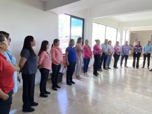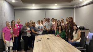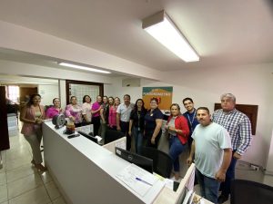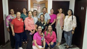 Salvador Díaz Olguín Secretario General y Comité Ejecutivo realizan recorrido por las diferentes áreas para hacer entrega de un Pin en forma de lazo Rosa, alusivo a la campaña de Octubre Rosa, esto con el fin de concientizar a mujeres a realizarse el chequeo correspondiente para la detección de Cáncer de mama.