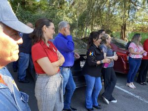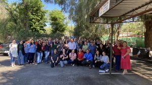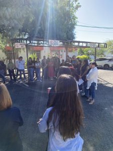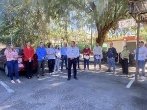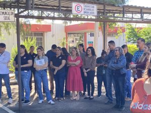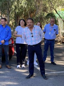 Salvador Díaz Olguín Secretario General y Comité Ejecutivo en las diferentes áreas realizando recorrido para hacer entrega de un Pin en forma de lazo Rosa, alusivo a la campaña de Octubre Rosa, esto con el fin de concientizar a mujeres a realizarse el chequeo correspondiente para la detección de Cáncer de mama.