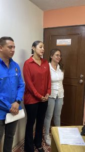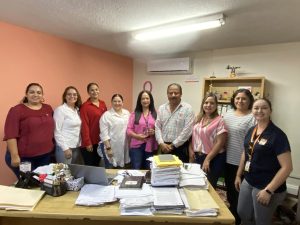 Salvador Díaz Olguín Secretario General y Comité Ejecutivo en las diferentes áreas realizando recorrido para hacer entrega de un Pin en forma de lazo Rosa, alusivo a la campaña de Octubre Rosa, esto con el fin de concientizar a mujeres a realizarse el chequeo correspondiente para la detección de Cáncer de mama.
