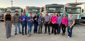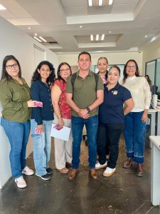 Salvador Díaz Olguín Secretario General y Comité Ejecutivo en las diferentes áreas realizando recorrido para hacer entrega de un Pin en forma de lazo Rosa, alusivo a la campaña de Octubre Rosa, esto con el fin de concientizar a mujeres a realizarse el chequeo correspondiente para la detección de Cancer de mama.
