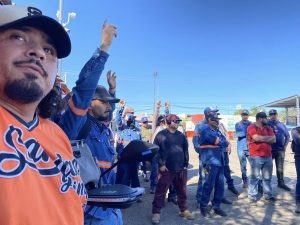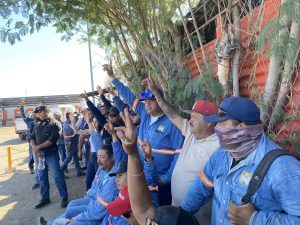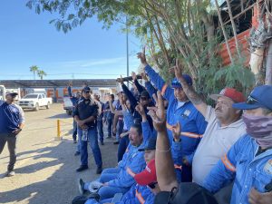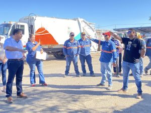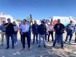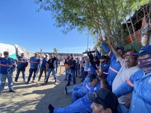 Salvador Díaz Olguín Secretario General y Comité Ejecutivo del SUTSMH en patios de Talleres de Sanidad y Limpia temas de la elección de Delegado y Subdelegado.